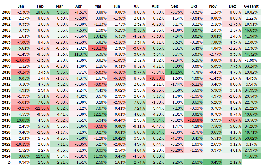 100% systematisch | unabhängige Renditeentwicklung | Absicherungsstrategien | langfristige Investitionen | kurzfristiges Trading | saisonale Effekte | Long & Short